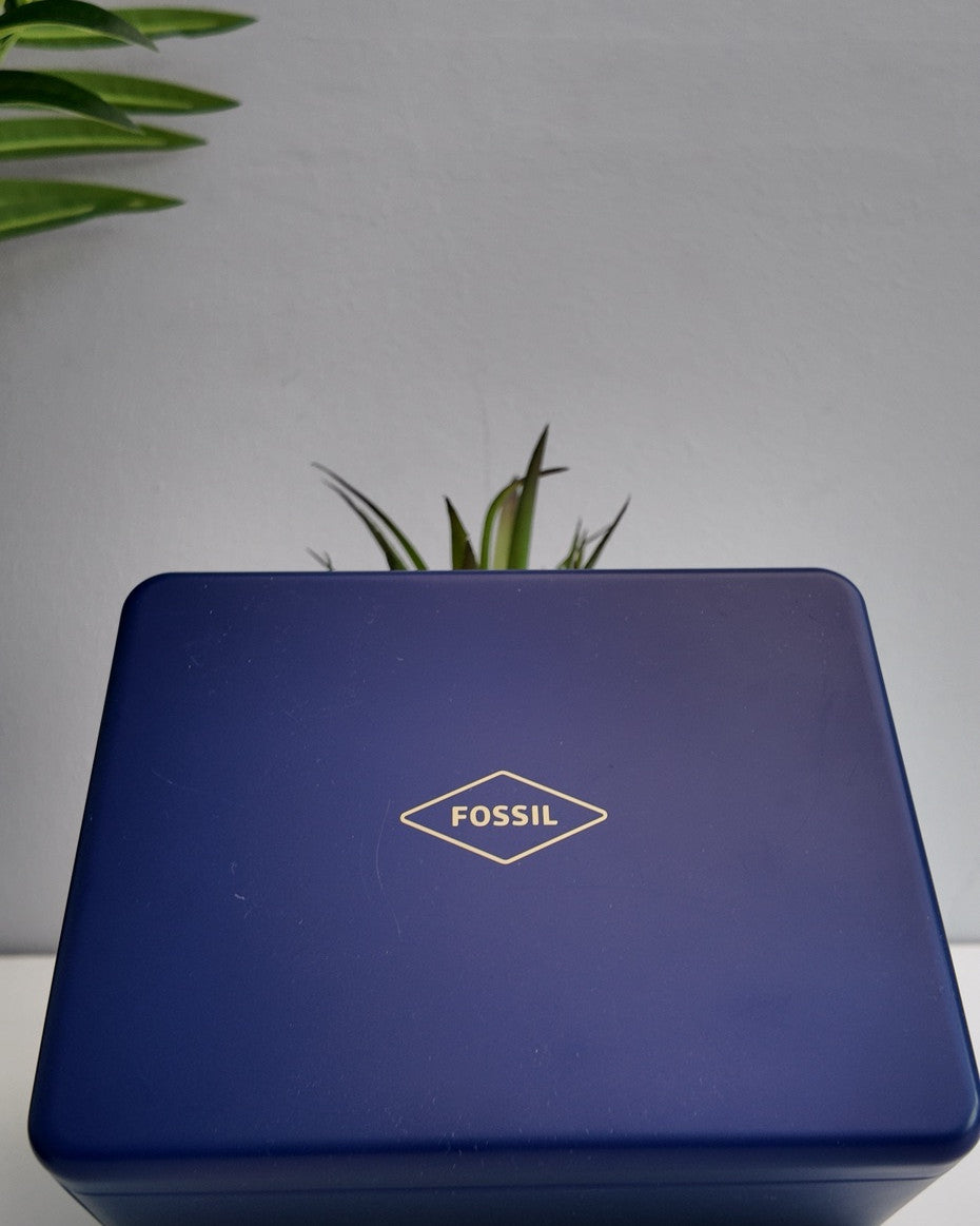 The brown leather strap is fashionable. The stainless steel case and black face is part of this watch. The analogue display lets you check the time quickly.