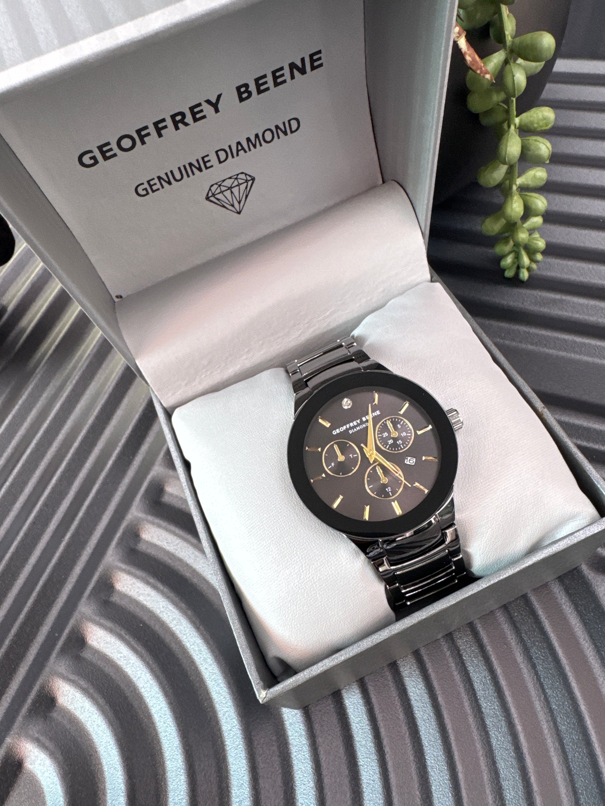 Emblazoned with genuine diamonds, this slick gunmetal watch will enrich your collection of everyday accessories.