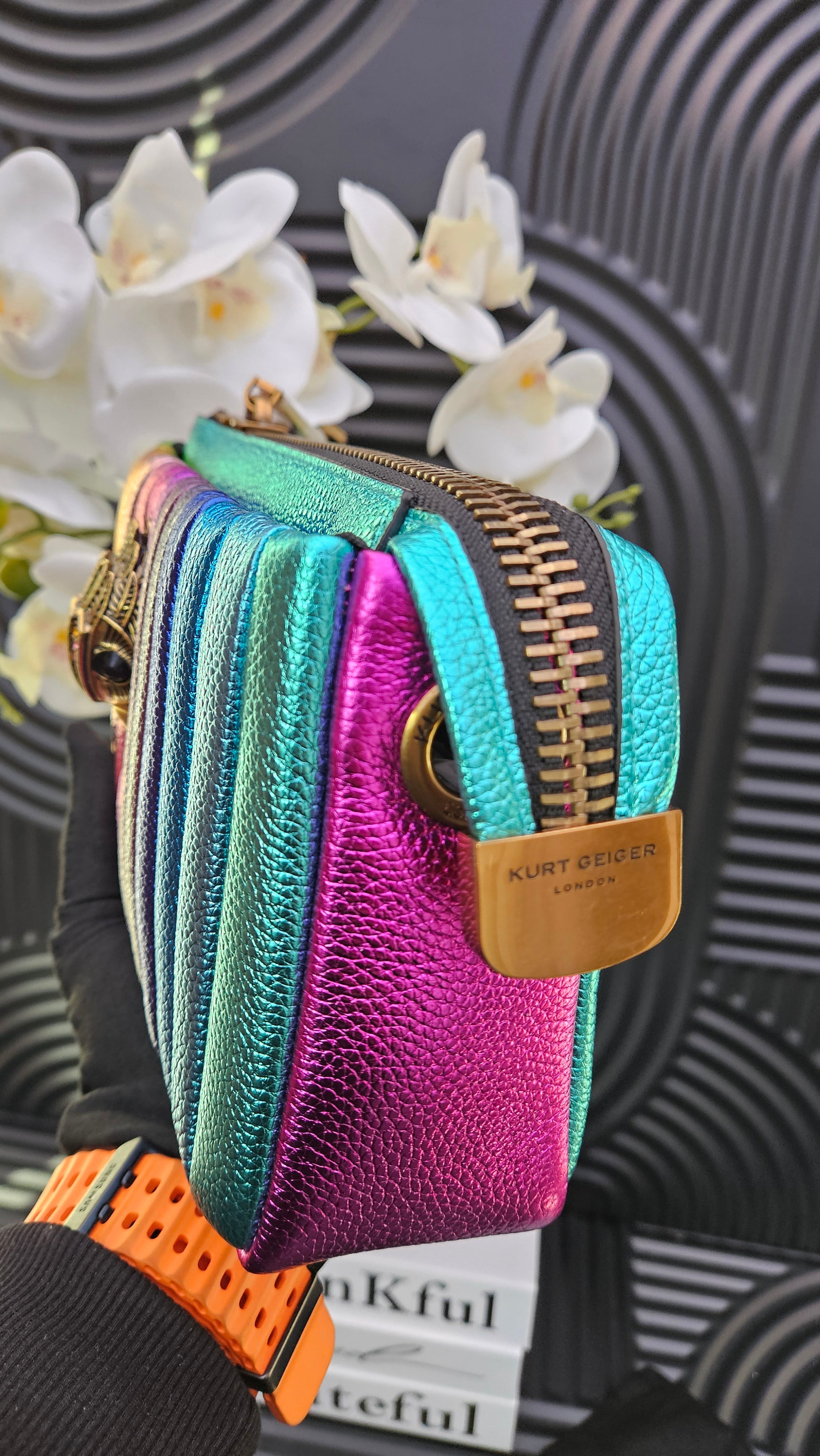 - Optional leather chain cross body strap