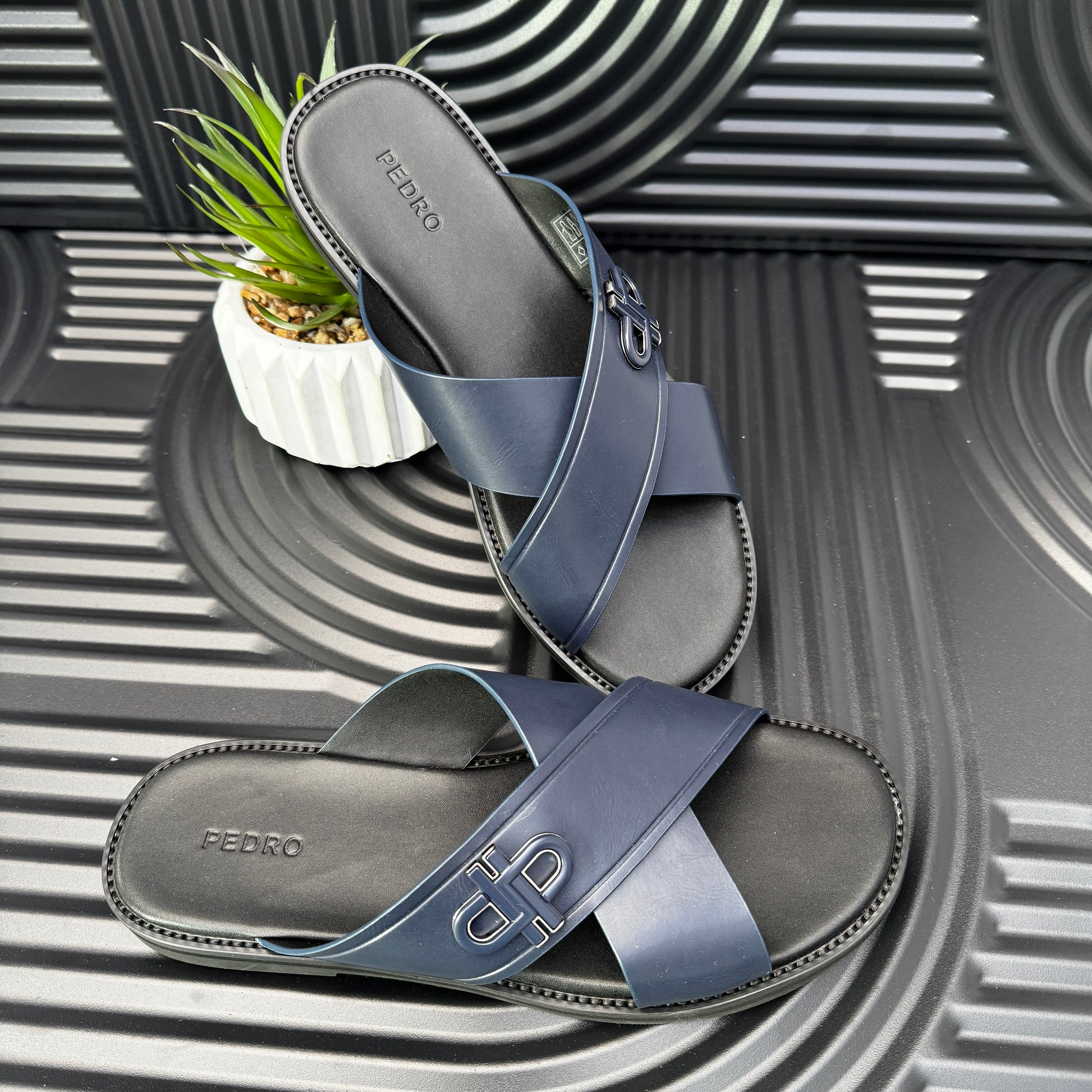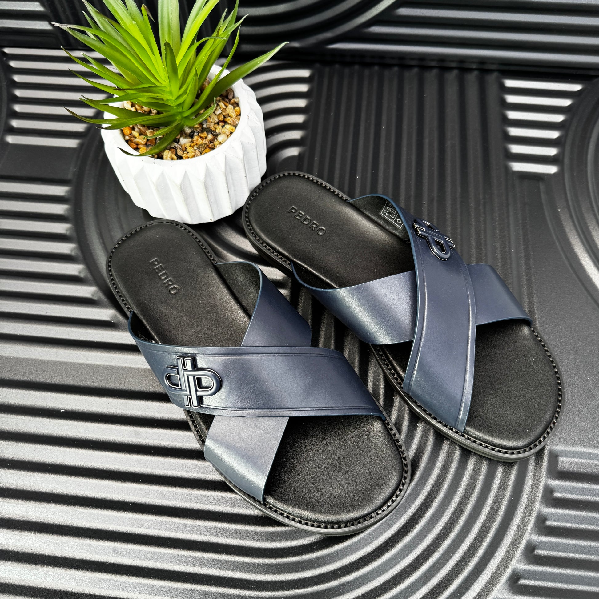 The Men's Icon Cross Sandals in Navy redefine casual elegance with a bold, sculptural design. Featuring a cross-strapped upper secured by distinctive monogram hardware, these sandals blend durability with refined minimalism. They offer a confident yet effortless look, perfect for those who appreciate style that balances function and statement.