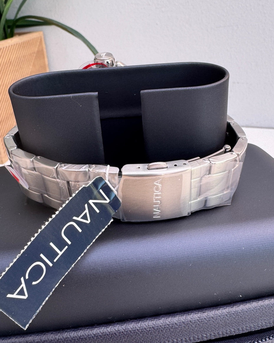 - Silver dial, 3 hands, fixed octagonal bezel and luminescent hands.