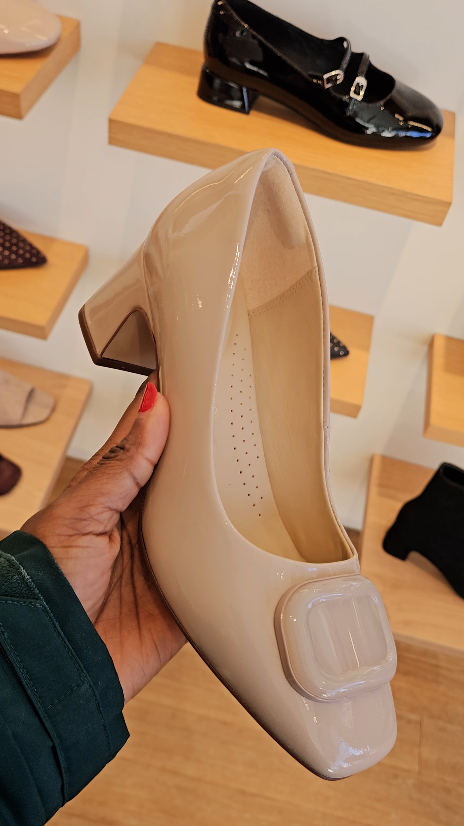This block heel combines sleek modern styling with premium materials, transitioning effortlessly from the office to smart-casual occasions. Crafted from glossy patent leathers, this profile features a block heel for a perfect balance of height and ease. Underfoot, our signature Contour Cushion footbed delivers lasting comfort, while a flexible rubber sole promotes comfortable movement, step after step.