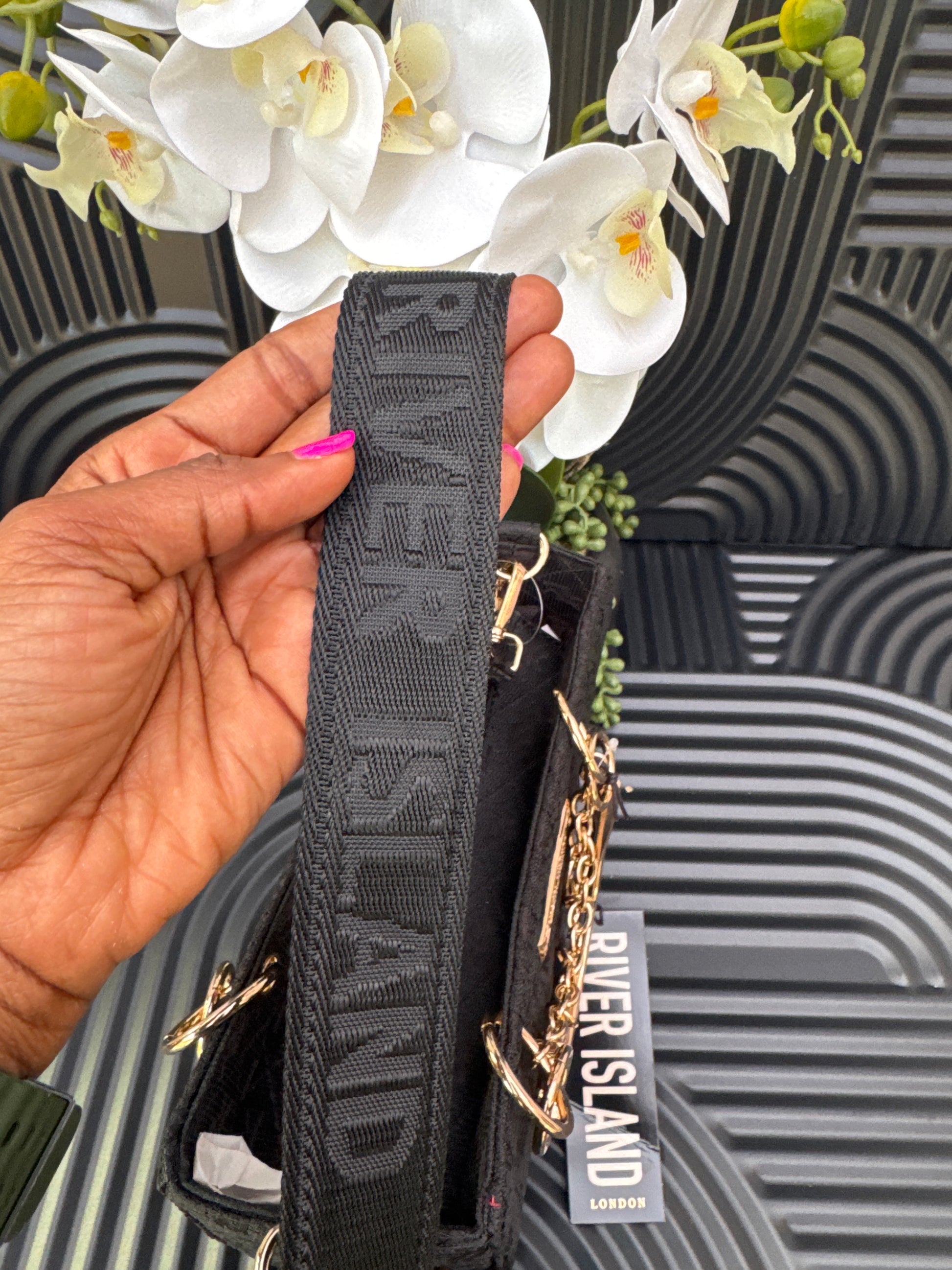Gold top handles, Gold RI branded hardware, Popper fastening, Fabric strap, L: 24.5cm, W: 11.5cm, H: 21cm, Lining made with 100% recycled material