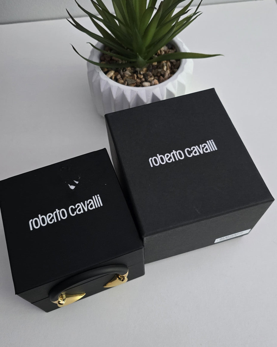 The dial is sleek and minimalist, showcasing the Roberto Cavalli logo and offering a clear, easy-to-read display. The bracelet-style strap combines polished gold and silver-tone stainless steel, ensuring both durability and comfort, while its seamless blend of metallic hues adds a versatile, high-end feel to any ensemble. Featuring precise quartz movement, the watch guarantees accurate timekeeping, while the scratch-resistant mineral crystal enhances its resilience. Whether worn to elevate a formal look or as a luxurious everyday piece, the Roberto Cavalli Gold Silver Tone Watch with Swarovski Stones is a timeless accessory that captures the essence of high fashion, glamour, and sophistication.