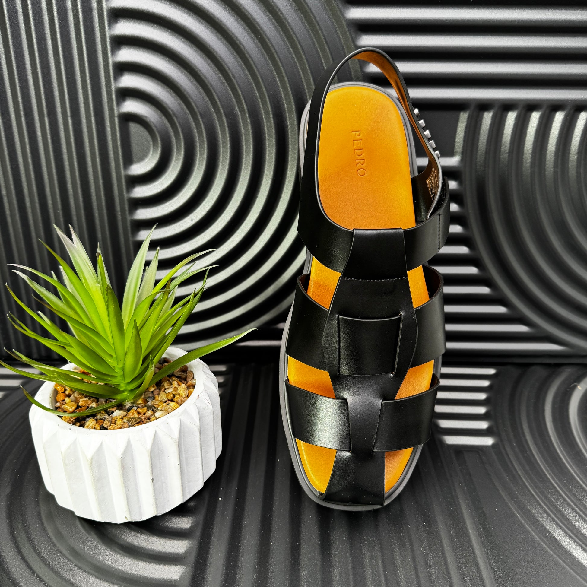 A stylish option for everyday wear, slip into the Roman Backstrap Sandals in black to create a handsome look during warmer days! A fisherman sandal construction keeps the feet well ventilated while offering a textured look, while branded hardware brings contemporary flair to an timeless design. Pair with linen pants for a perfect breezy summer getaway.