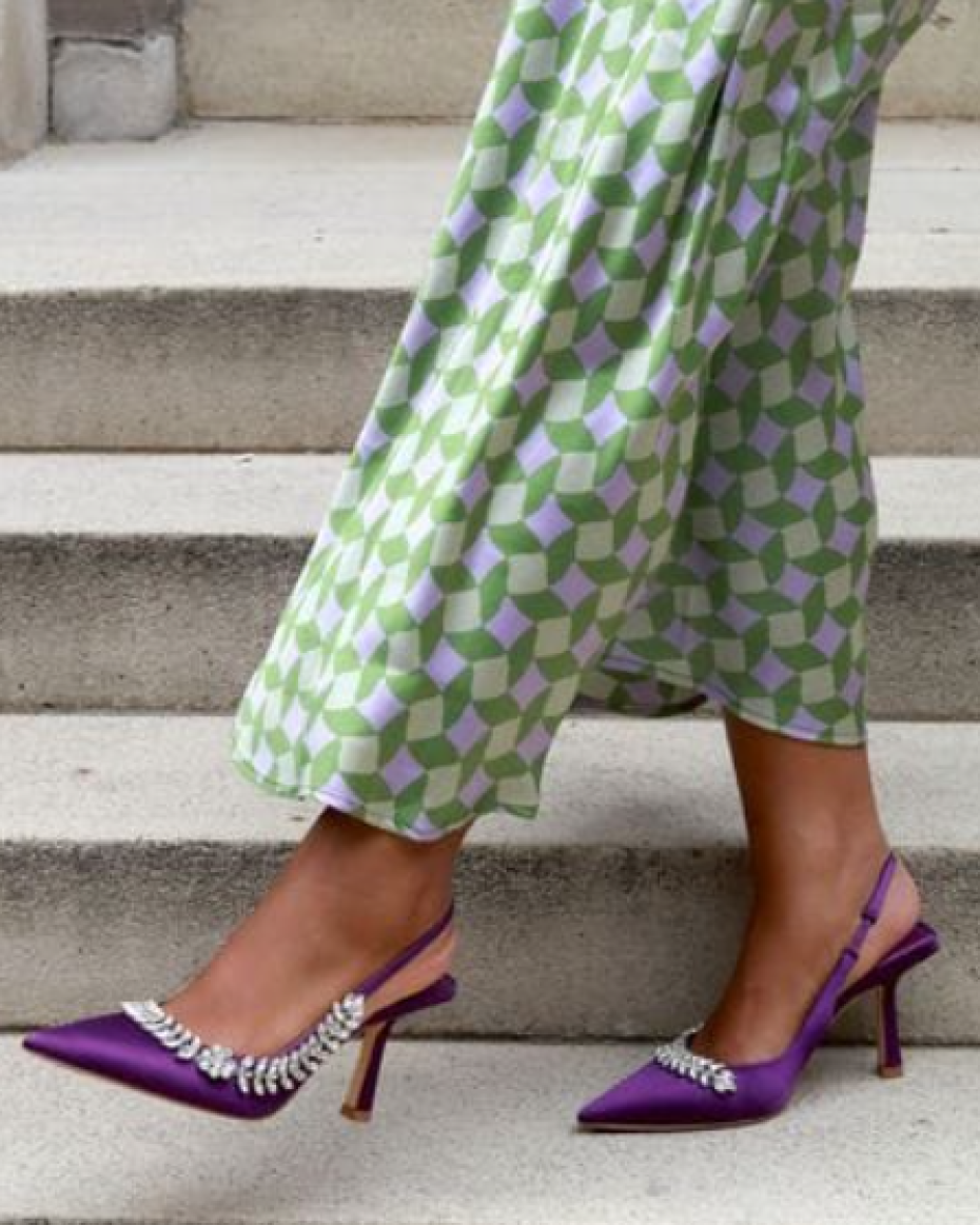 Satin Sling Back Court Heel With Diamante Embellishment