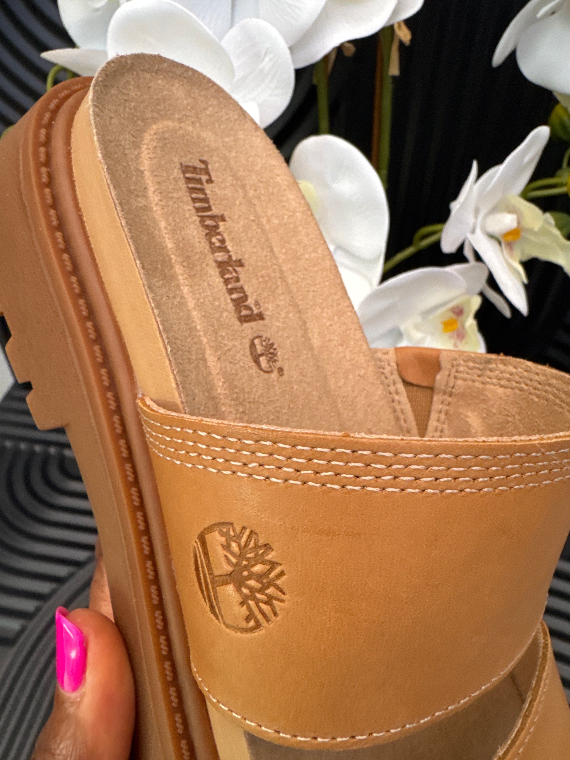 This women's slide sandal is made with quality materials, like premium Timberland leather, a synthetic suede lining, and an OrthoLite foam footbed to help cushion your feet. Add walkable comfort to your everyday styling.
