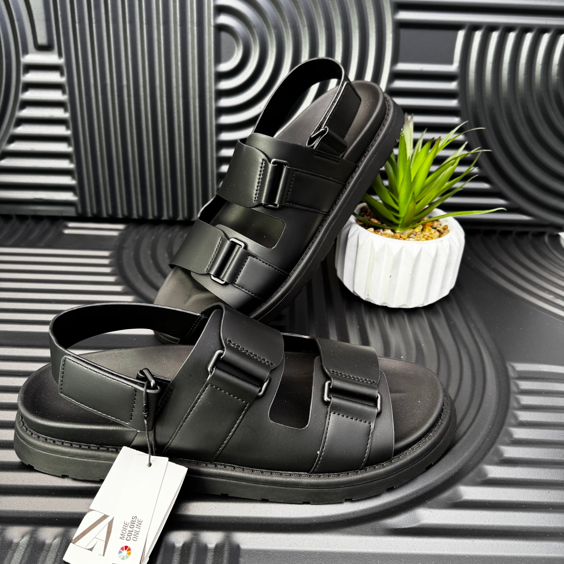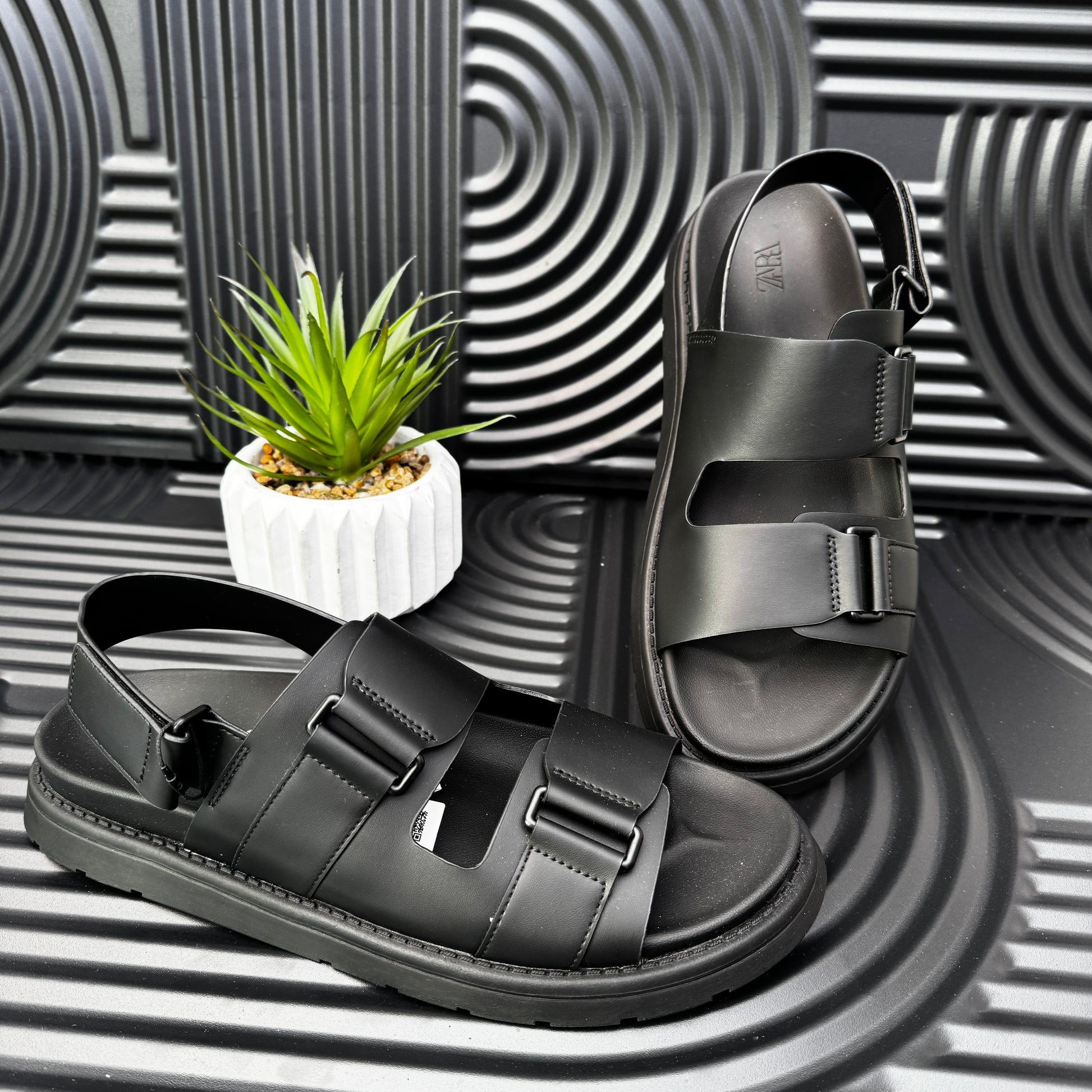 Strappy sandals with buckles. Fastens at the instep with two wide straps. Featuring a third strap that fastens around the ankle. Anatomical insole and chunky track sole.
